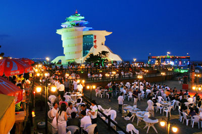 碧螺塔酒吧公園自建成以來,每年都吸引了大量的游客去游玩,白天在里面看到的的游客們悠閑游樂的情景,晚上卻又是另外一番景象了。漂亮、熱鬧、歡樂的場面吸引著每一位游客,沙灘篝火晚會基地、海上垂釣基地、海上帆船基地、海上婚紗攝影基地、海上潛水基地、海上演藝基地、海上迪廳海上郵局、海上美食廣場、海上漂浮酒吧等等,讓您玩的盡興,玩的開心,親近大海,讓您度過愉快涼爽的暑期假日。